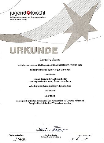 | >> von der 'experimenta' in Heilbronn wurden beide eingeladen ihr Projekt am 15. Juni 2013 zu präsentieren ! << Kann Aspirin das pflanzliche Immunsystem stimulieren?